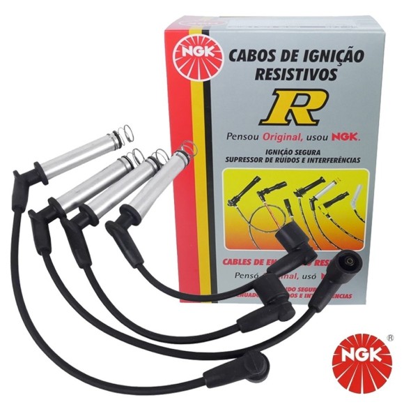 Cabos de silicone de 7mm com filamento de níquel-cromo com alta flexibilidade e alta capacidade de isolação evitando assim fuga de corrente com durabilidade superior. Os cabos NGK montados com supressores de ruído, possuem blindagem metálica permitindo maior dissipação térmica permitindo centelhas de melhor quali