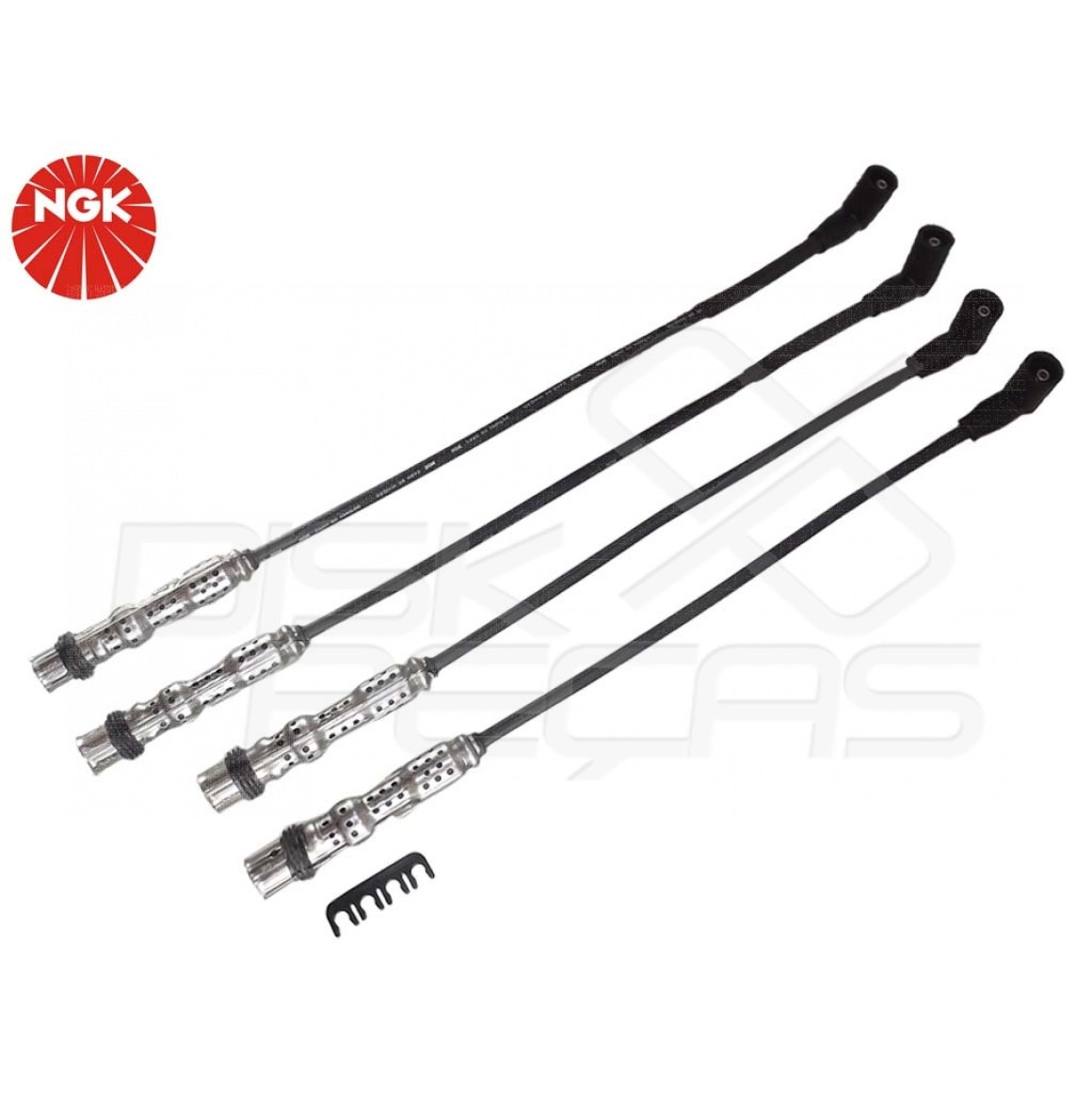 Cabos de silicone de 7mm com filamento de níquel-cromo com alta flexibilidade e alta capacidade de isolação evitando assim fuga de corrente com durabilidade superior. Os cabos NGK montados com supressores de ruído, possuem blindagem metálica permitindo maior dissipação térmica permitindo centelhas de melhor qualidade na vela.